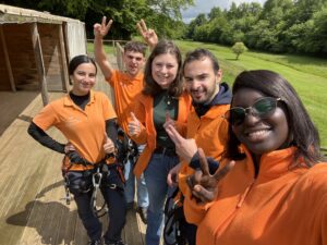 Pour les entreprises, il est également possible d’organiser un séminaire insolite au sein de notre lounge nature. Près de soixante personnes peuvent déjeuner ensemble au sein de cet espace aussi atypique qu’apaisant. Plusieurs formules sont proposées. Des planches de fromages et de charcuteries, au mignardises sucrées, c’est à vous de choisir ! Nous collaborons avec un boucher local, Monsieur Arnaud, proposant des préparations maison et des produits de qualité. Toutes les conditions sont réunies pour un bel instant de partage et de bonheur. Vous pouvez évidemment coupler le repas avec les activités du Parc Aventure. L’activité Team Building L’odyssée du Totem pour poursuivre l’aventure en pleine nature ; une partie de Laser game outdoor pour un amusement certain en groupe ; ou encore des balades en trottinettes électriques tout-terrain pour découvrir la Charente Maritime de l’intérieur d’une manière nouvelle, autant de bonnes idées pour amener de la cohésion au sein de votre équipe.