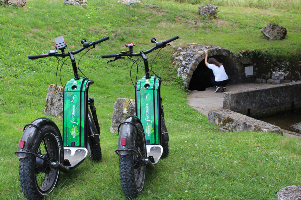 Pour découvrir les alentours de Fontdouce, les sous-bois, les vallées, les vignes et le petit patrimoine constitué de fontaines, de lavoirs et de petits hameaux, rien de tel que la trottinette électrique tout terrain ! Sans bruit, tout en souplesse, elle vous permet de traverser des espaces naturels diversifiés avec une impression de planer ! Quelques petites précisions sont à prendre toutefois en compte : tous les utilisateurs doivent être âgés de 14 ans révolus minimum, une pièce d’identité est demandée, une empreinte de carte bancaire de 500€ est prise (montant qui n’est pas débité) et les parcours sont à télécharger sur votre téléphone portable (prévoyez de charger votre téléphone en conséquence !).